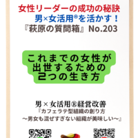 №203これまでの女性が出世するための2つの生き方 <アドバイス> 「これまでの女性が出世するための2つの生き方がある」と言われています。 1つは「名誉男性(スカートを履いたおやじ)」になって女性差別するようなおじさま達 […]